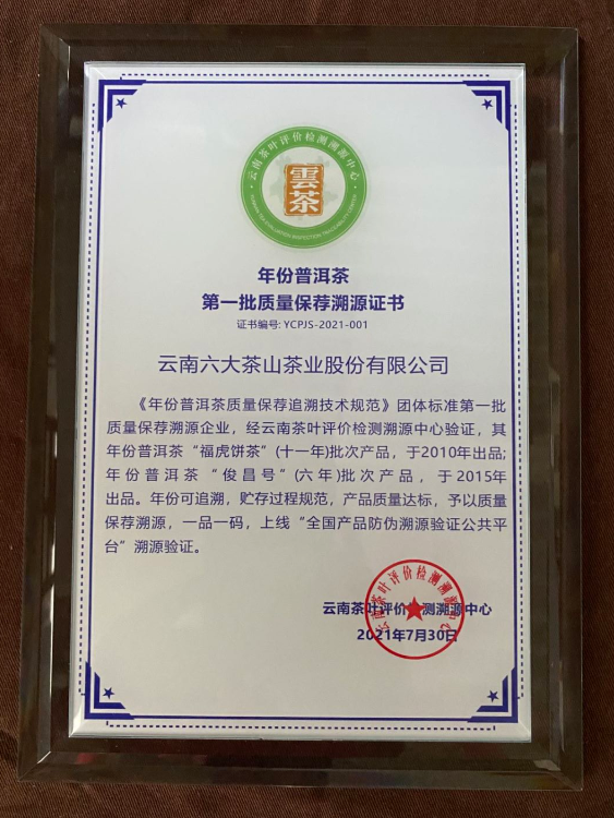 2010年“?;灢琛?、2015年“俊昌號”(六年)榮獲年份普洱茶保薦溯源